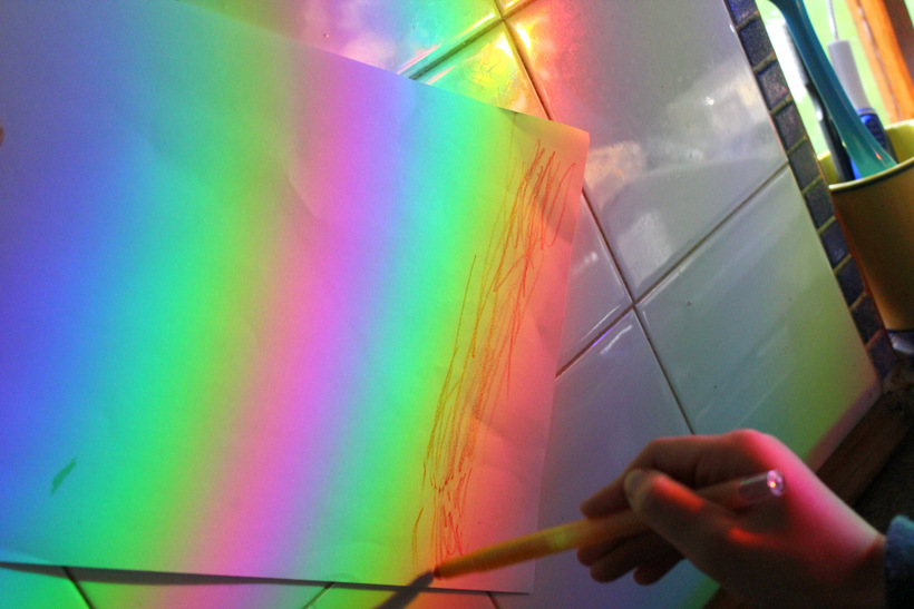 We tried to make rainbows on a blank piece of paper using a prism and a cd. Pinterest has some great ‘rainbow-making’ science ideas if you’re looking for inspiration!